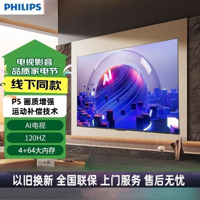 飞利浦电视85英寸 4K超高清巨幕120Hz高刷 4+64G AI智慧全面屏游戏电视机 85PUF8160/T3
