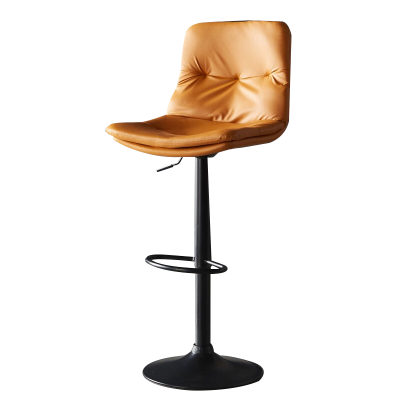 科野 吧台椅 凳子北欧现代简约高脚椅子酒吧椅铁艺高脚椅凳高靠背 舒适皮革 加大座面 橘色