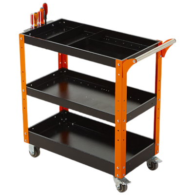 锦北工具车三层手推车维修车间收纳零件车加厚移动工具推车橙色