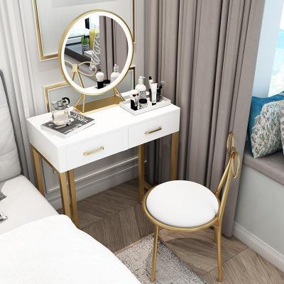 森美人北欧风化妆镜金色圆形梳妆台不锈钢欧式d带灯公主化妆镜