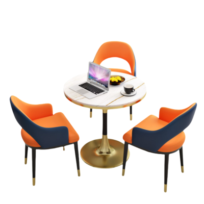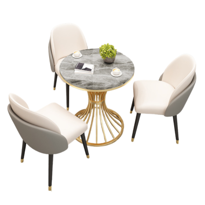 伟樽休闲桌椅岩板圆桌70*70*75cm+椅子*3套