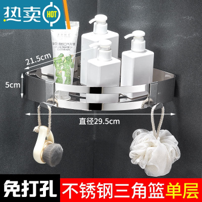 敬平免打孔卫生间置物架免打孔304不锈钢浴室壁挂三角架浴室洗手间收 304单层角架[可打孔+免打孔]浴室置物架