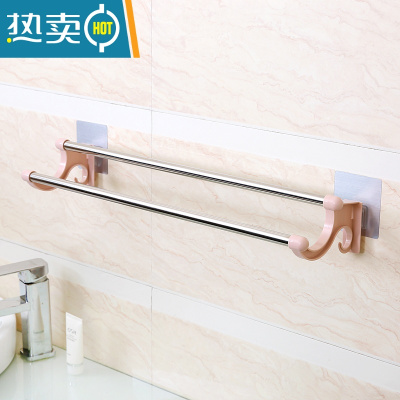 敬平挂毛巾架免打孔粘贴浴室毛巾挂架卫生间厨房抹布架毛巾挂钩手巾杆 款式①--北欧粉浴室置物架