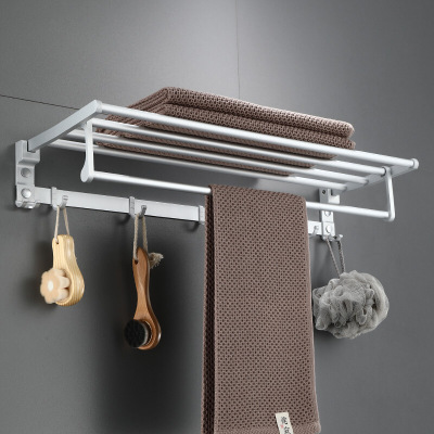 敬平卫生间置物架浴室毛巾架304不锈钢厕所浴巾架免打孔壁挂式杆架子 A款201折叠毛巾架60浴室置物架