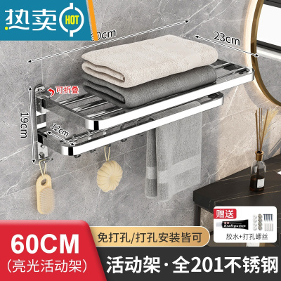 敬平卫生间置物架浴室毛巾架304不锈钢厕所浴巾架免打孔壁挂式杆架子 B款304折叠毛巾架60浴室置物架