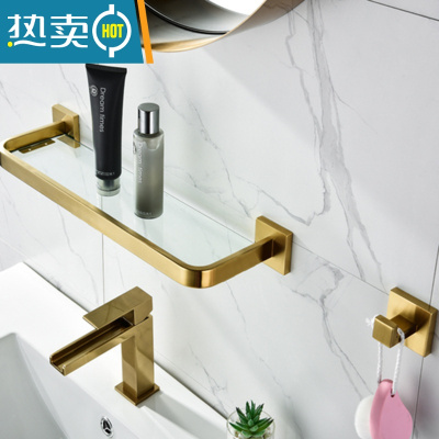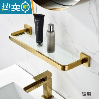 敬平金色浴巾架304卫浴浴室毛巾架免打孔铜卫生间置物架洗漱台壁挂件 30cm圆角玻璃浴室置物架