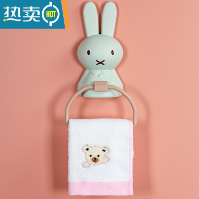 敬平儿童毛巾架免打孔卫生间浴室卡通可爱宝宝洗脸挂晾挂钩杆置物架子 [毛巾架]兔子绿色浴室置物架