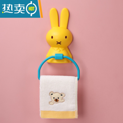 敬平儿童毛巾架免打孔卫生间浴室卡通可爱宝宝洗脸挂晾挂钩杆置物架子 [毛巾架]兔子黄色浴室置物架