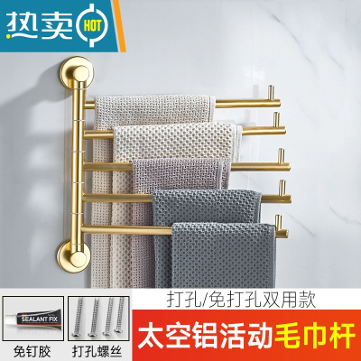 敬平免打孔太空铝浴室毛巾架旋转金色毛巾杆壁挂实心双杆多杆浴巾架 实心五杆标准款浴室置物架