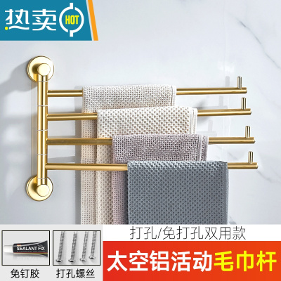 敬平免打孔太空铝浴室毛巾架旋转金色毛巾杆壁挂实心双杆多杆浴巾架 实心四杆标准款浴室置物架