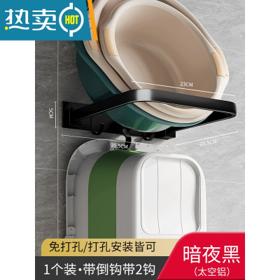 敬平脸盆收纳架卫生间壁挂免打孔盆架浴室洗手间放盆子器厕所置物架 创新升级浴盆款-黑色浴室置物架