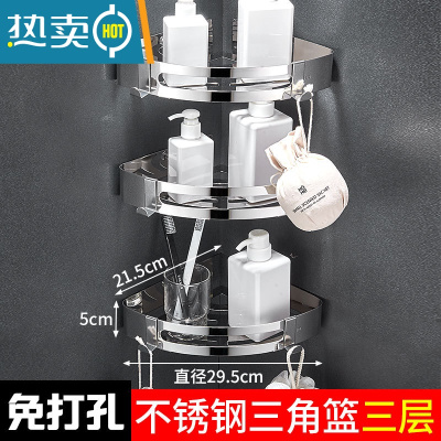 敬平免打孔卫生间置物架免打孔304不锈钢浴室壁挂三角架浴室洗手间收 304三层角架[可打孔+免打孔]浴室置物架