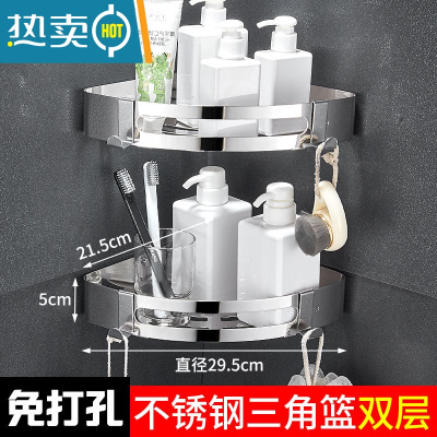 敬平免打孔卫生间置物架免打孔304不锈钢浴室壁挂三角架浴室洗手间收 304双层角架[可打孔+免打孔]浴室置物架