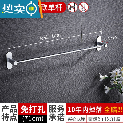 敬平毛巾架免打孔卫生间浴室架子太空铝毛巾杆单杆厨房置物架挂浴巾架 亮砂单杆71浴室置物架