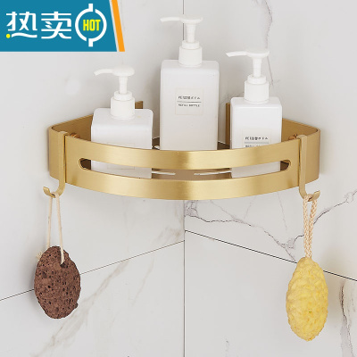 敬平北欧拉丝金卫生间置物架转角免打孔浴室收纳三角篮厕所角架太空铝 拉丝金单层角架浴室置物架