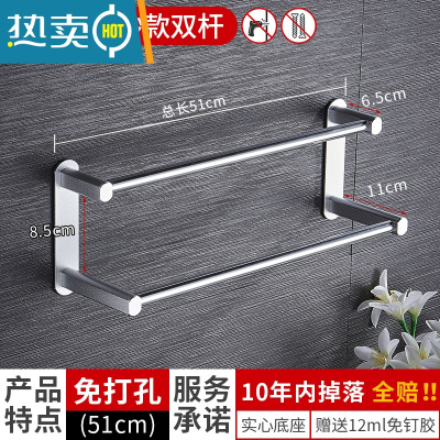 敬平毛巾架免打孔卫生间浴室架子太空铝毛巾杆单杆厨房置物架挂浴巾架 亮砂双杆51浴室置物架