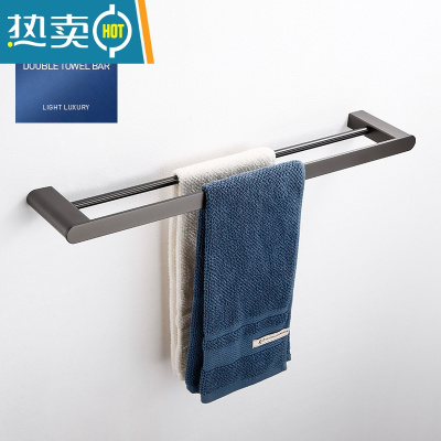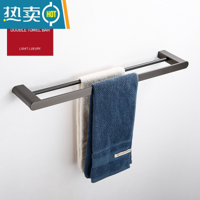 敬平枪灰色304不锈钢毛巾架浴巾架 卫生间置物架黑色浴室五金挂件 双杆(50cm)浴室置物架