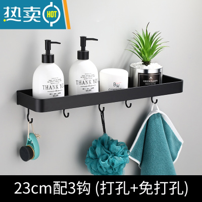 敬平黑色壁挂置物架 免打孔太空铝架置物卫生间架毛巾 镜前架收纳浴室 23单层带钩(打孔免打孔)浴室置物架