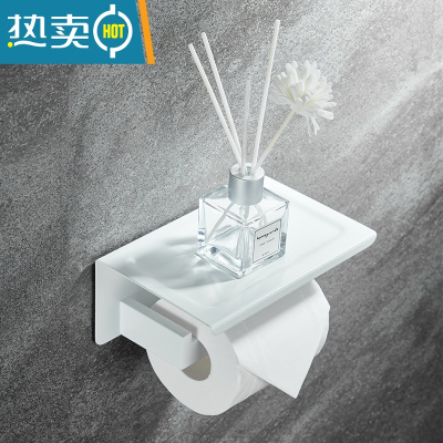 敬平北欧浴室毛巾架免打孔卫生间置物架墙上白色浴巾架折叠厕所收纳架 白色卷纸架浴室置物架