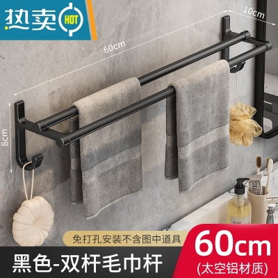 敬平免打孔浴室毛巾架浴巾架黑色卫生间置物架毛巾杆挂件架子五金 带钩毛巾双杆(免打孔)浴室置物架