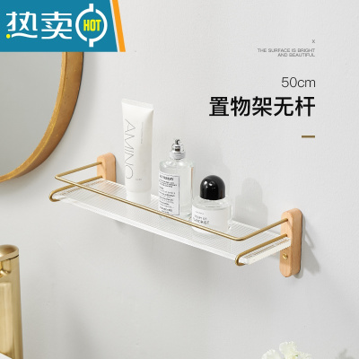 敬平浴室胡桃木置物架不锈钢毛巾架卫生间亚克力洗漱壁挂收纳架免打孔 榉木50cm置物架+护栏浴室置物架
