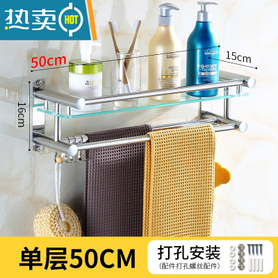 敬平浴室毛巾架不锈钢双层卫生间置物架2层3层厕所玻璃浴巾架卫浴壁挂 [钢化玻璃]单层50(打孔)浴室置物架