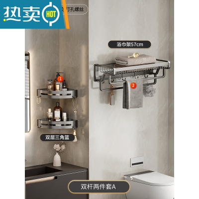 三维工匠免打孔毛巾架浴室卫生间置物架壁挂卫浴厕所三角收纳用品大全 免打孔双层角型架浴室置物架