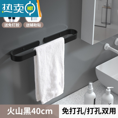 敬平免打孔白色毛巾架单杆浴室挂件卫生间毛巾杆置物架毛巾挂浴巾架 火山黑40cm(免打孔)浴室置物架