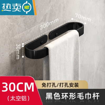 敬平免打孔毛巾架卫生间太空铝浴巾架浴室挂架子厕所置物架毛巾杆单杆 北欧黑色U型毛巾架30CM-免打孔 承重10浴室置物架