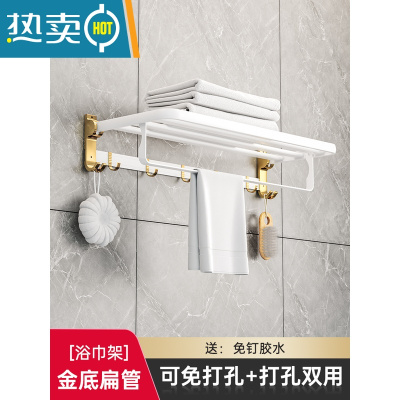 敬平轻奢风毛巾架免打孔卫生间置物架壁挂浴室挂架厕所浴巾架卫浴挂件 60cm浴巾架(加厚扁管排钩款)[金底白管]浴室置物架