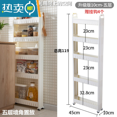 敬平卫生间10cm置物架落地厕所浴室洗手间缝隙小推车收纳架厨房夹缝架 升级10宽119高五层浴室置物架