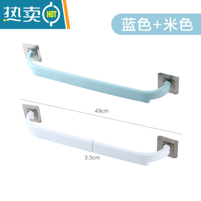 敬平挂毛巾架免打孔粘贴浴室毛巾挂架卫生间厨房抹布架毛巾挂钩手巾杆 款式②--蓝+米[2个装]普通款浴室置物架