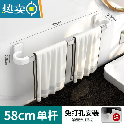 敬平毛巾架免打孔卫生间浴室浴巾架厕所洗手间壁挂架子毛巾单杆置物架 银色♦58cm-单杆浴室置物架