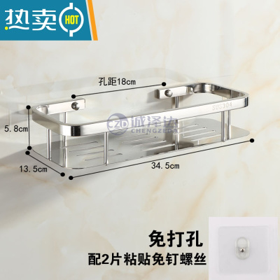 敬平浴室三角架免打孔置物架304钢转角架卫生间双层壁挂收纳架调料架 单层方架免打孔 配粘贴免钉螺丝浴室置物架