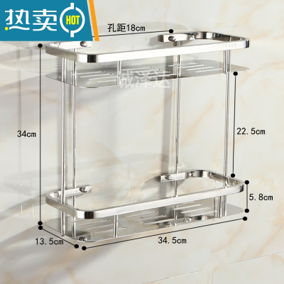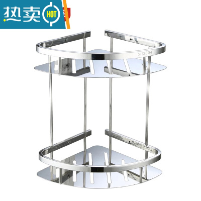 敬平浴室三角架免打孔置物架304钢转角架卫生间双层壁挂收纳架调料架 双层三角架 需钻孔配螺丝浴室置物架
