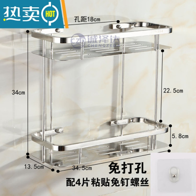敬平浴室三角架免打孔置物架304钢转角架卫生间双层壁挂收纳架调料架 双层方架免打孔 配粘贴免钉螺丝浴室置物架