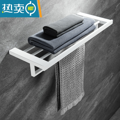 敬平北欧浴室毛巾架免打孔卫生间置物架墙上白色浴巾架折叠厕所收纳架 白色毛巾单杆浴室置物架