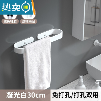 敬平免打孔白色毛巾架单杆浴室挂件卫生间毛巾杆置物架毛巾挂浴巾架 凝光白30cm(免打孔)浴室置物架