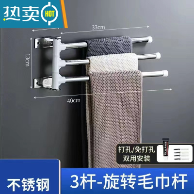 三维工匠免打孔毛巾架浴室卫生间置物架壁挂卫浴厕所三角收纳用品大全 免打孔折叠浴巾架60cm浴室置物架