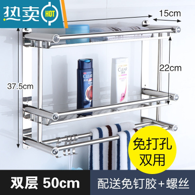 敬平卫生间浴室免打孔洗手间不锈钢毛巾架厕所收纳架洗漱台壁挂 [免打孔]50cm双层板加厚浴室置物架