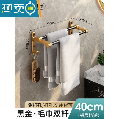 敬平毛巾架免打孔卫生间太空铝浴室双杆置物架免钉折叠浴巾收纳架简约 豪华双层款-尊贵黑50cm浴室置物架