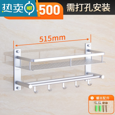 敬平免打孔浴室太空铝置物架双层卫浴毛巾架卫生间淋浴房壁挂式收纳架 9018单层(长515mm)-打孔浴室置物架