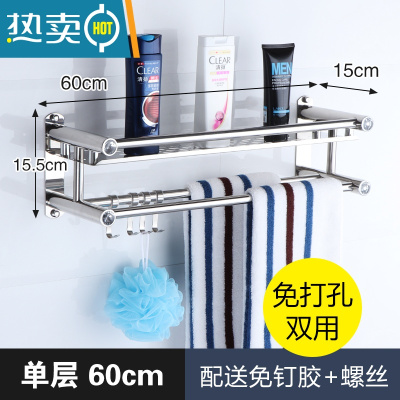 敬平卫生间浴室免打孔洗手间不锈钢毛巾架厕所收纳架洗漱台壁挂 [免打孔]60cm单层板加厚浴室置物架