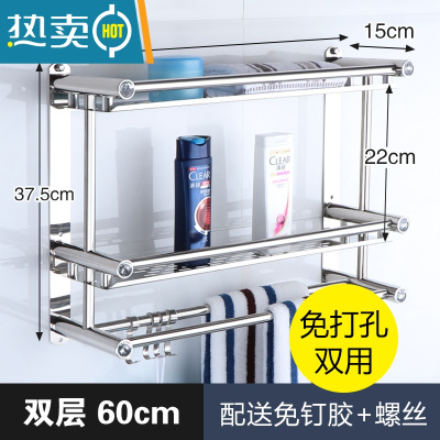 敬平卫生间浴室免打孔洗手间不锈钢毛巾架厕所收纳架洗漱台壁挂 [免打孔]60cm双层板加厚浴室置物架