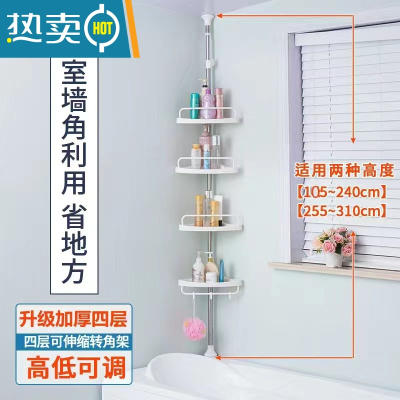 敬平不锈钢免打孔浴室卫生间墙角收纳架卫浴伸置物架顶天立地沥水阳台 [加厚4托盘可调节]+无毛巾架浴室置物架