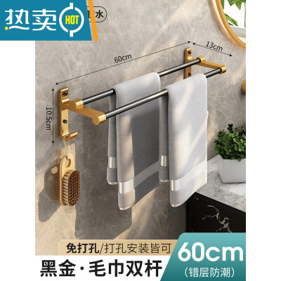 敬平毛巾架免打孔卫生间太空铝浴室双杆置物架免钉折叠浴巾收纳架简约 豪华双层款-尊贵黑60cm浴室置物架