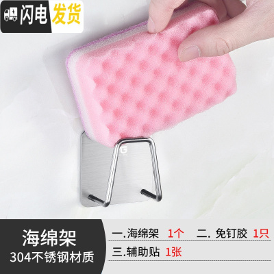 三维工匠免打孔拖把架挂钩卫生间不锈钢壁挂浴室挂架扫把架卡座置物收纳架 海绵架[1个装]