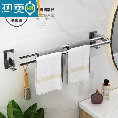 敬平免打孔不锈钢毛巾架卫生间浴巾架浴室挂架厕所置物架毛巾杆单双杆 双杆60cm(精钢款)浴室置物架