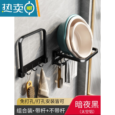 敬平脸盆收纳架卫生间壁挂免打孔盆架浴室洗手间放盆子器厕所置物架 [黑色组合装]带杆款+不带杆款浴室置物架