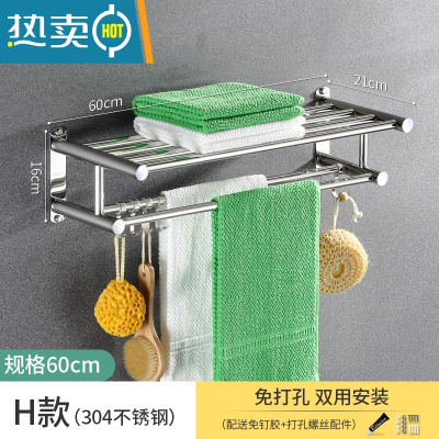 敬平卫生间毛巾架不锈钢免打孔浴室挂架304不锈钢浴巾架置物架壁挂式 H款60cm(304加厚)浴室置物架
